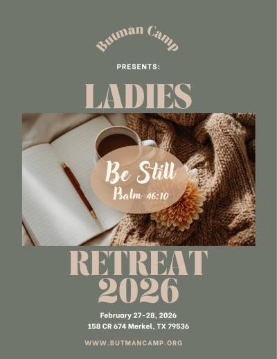 Butman Camp’s Ladies Retreat is for all women, young and old, and from all denominations and walks of life. The vision is to bring ladies together for a time of fellowship, worship, rest, & reflection. Our prayer is that each lady will receive something personal from the Lord and that each lady will be refreshed, restored, rejuvenated, and replenished to go back into their places of influence to change the lives around them.